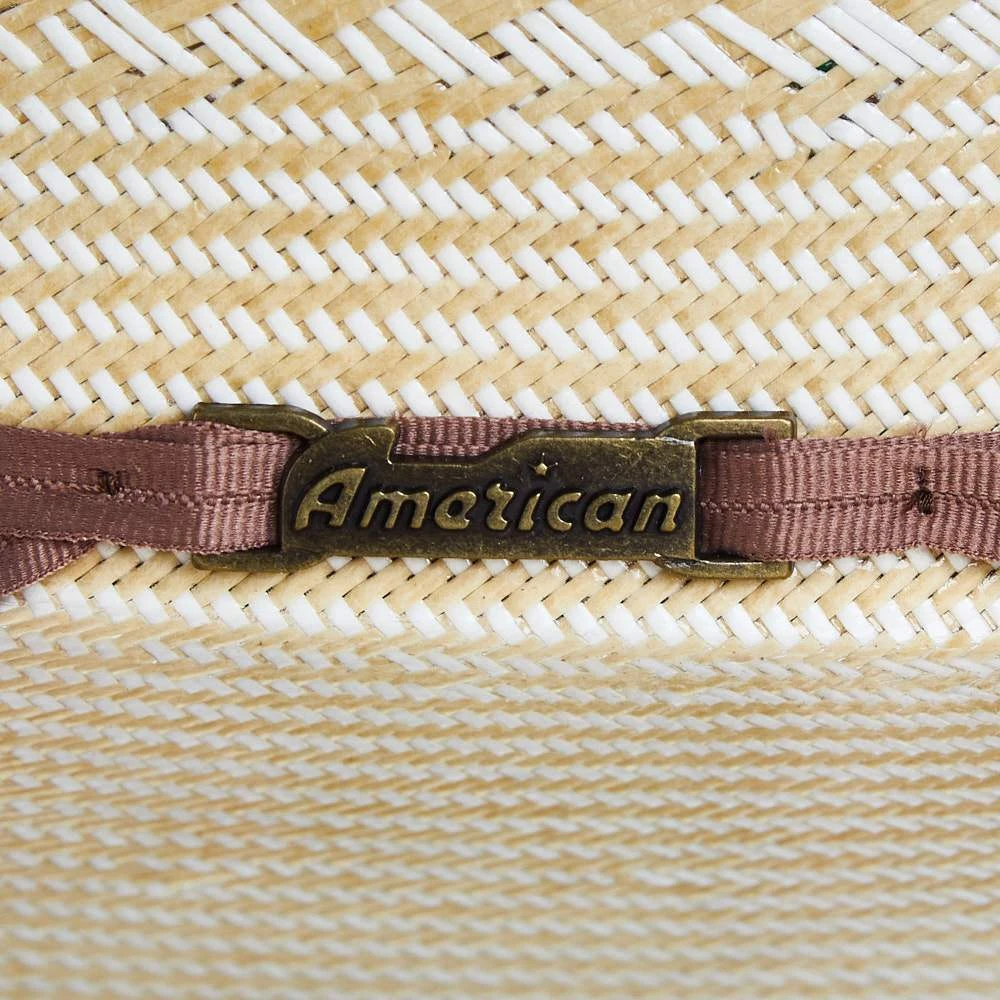 This American 15 Star Weath Straw Cowboy Hat is beautiful with any crease. It is open crown, has a long oval profile, and a 4-1/2″ Brim.