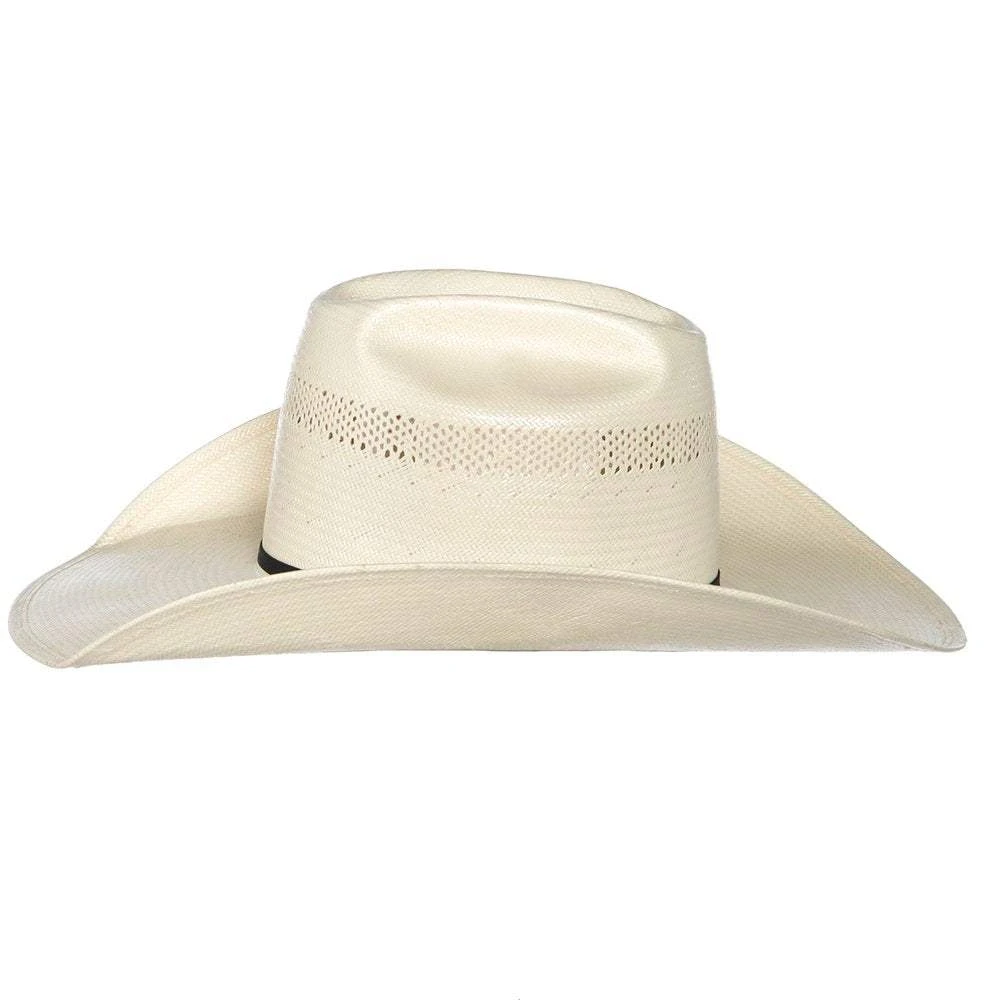 This American 20 Star Shantung Straw Cowboy Hat is beautiful in any crease. It is open crown, has a long oval profile, and a 4-1/4″ Brim.