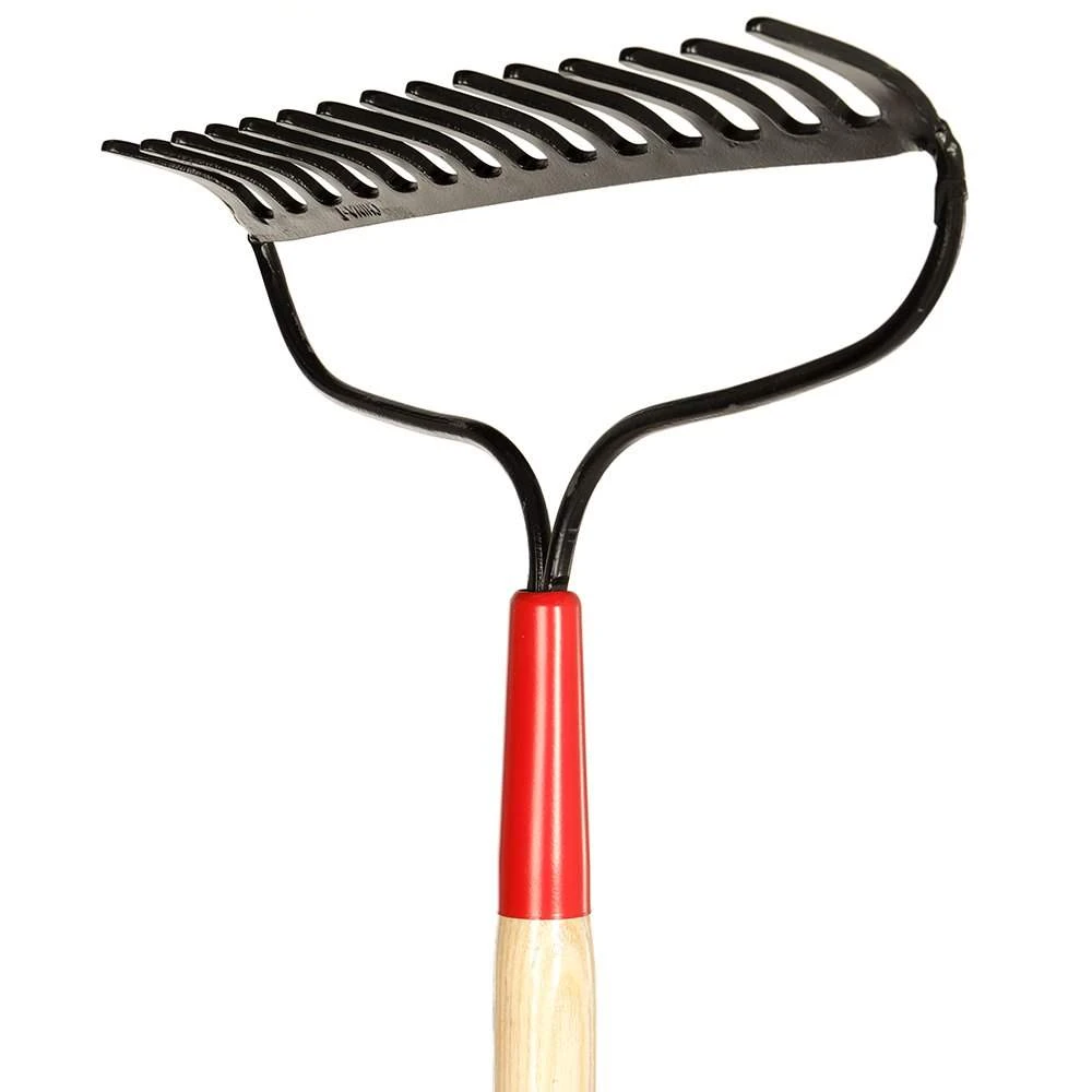 This 15 tine forged bow rake is great for breaking up soil, spreading mulch, collecting leaves, hay, grass and other garden debris. Extra long 66″ handle reduces back strain.