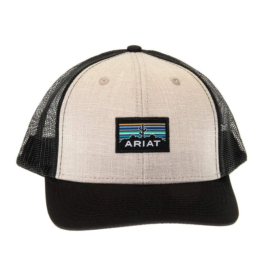 Quality Ariat mens cap by M&F Western Products. 6 panel reinforced cap with a stone textured material on front panels. Ariat logo on front. Black snapback closure.