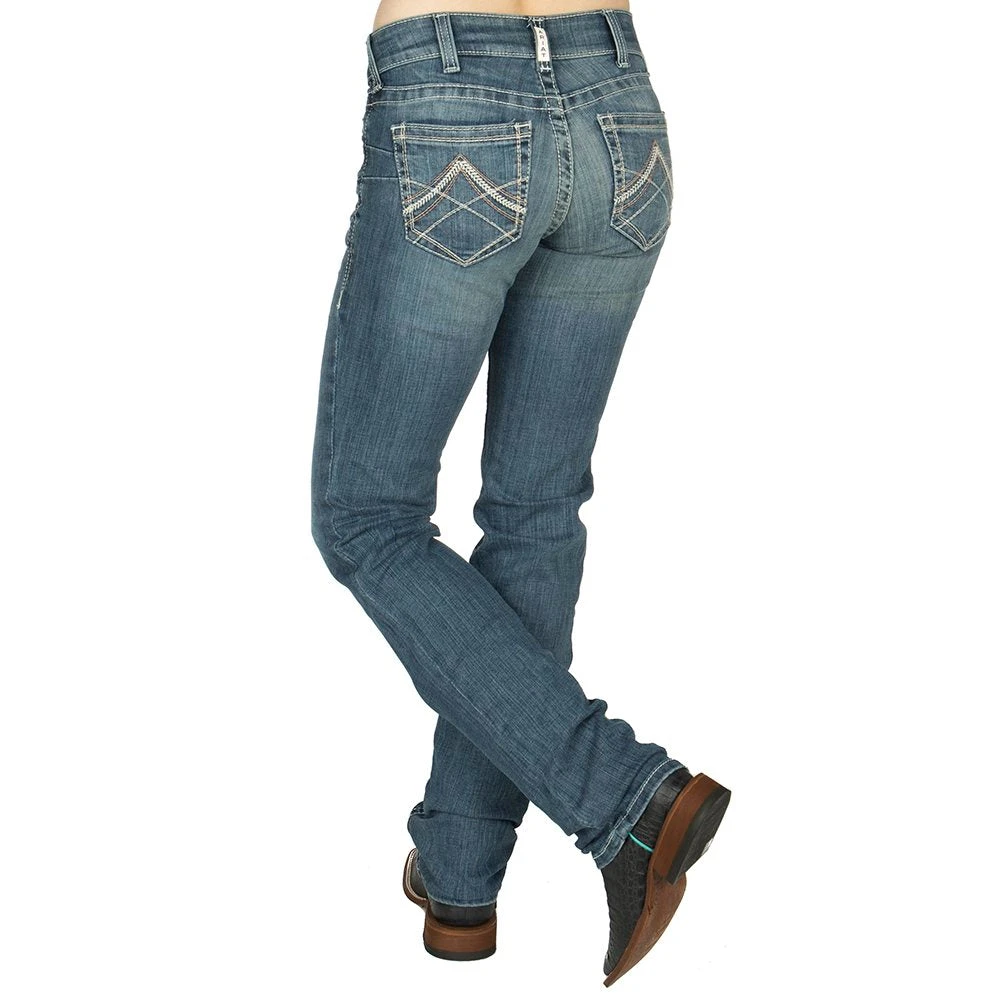 These Ariat jeans feature a mid rise, and a straight leg! A great fit with a waistband that will not gap and a seat that will not sag. You will look great and feel comfrotable in the saddle or everyday wear. 10017217