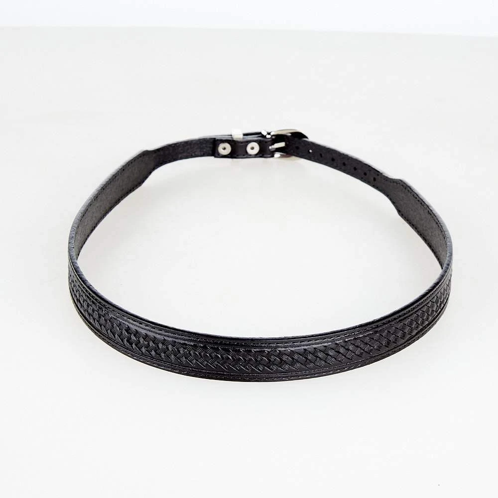 This leather basket weave stamped hat band is available in natural and black is a great, simple addition to any hat.