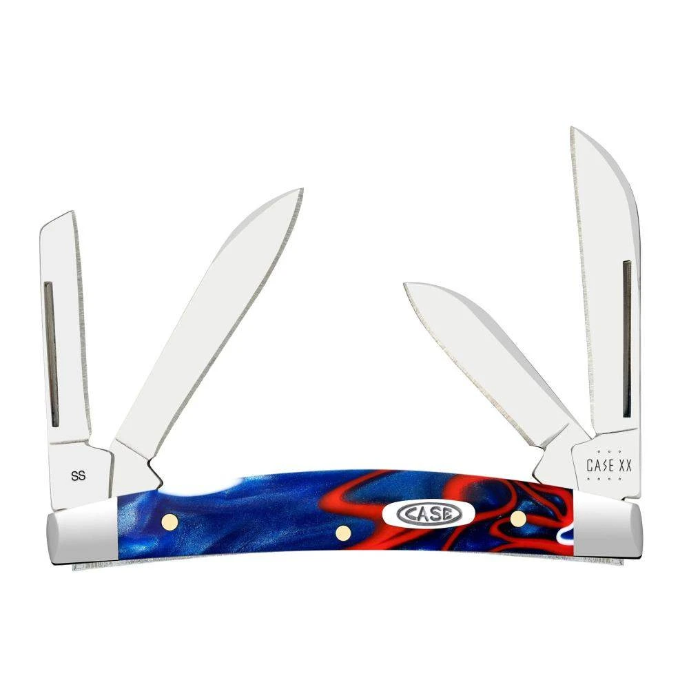 The (’68) Small Congress pocket folding knife features a sheepfoot blade with spear, pen and coping blades made of mirror polished steel, with nail nicks for opening. Two bladed versions are fitted with only sheepfoot and pen blades. Each measures 3 1/8 inches with nickel silver bolsters.