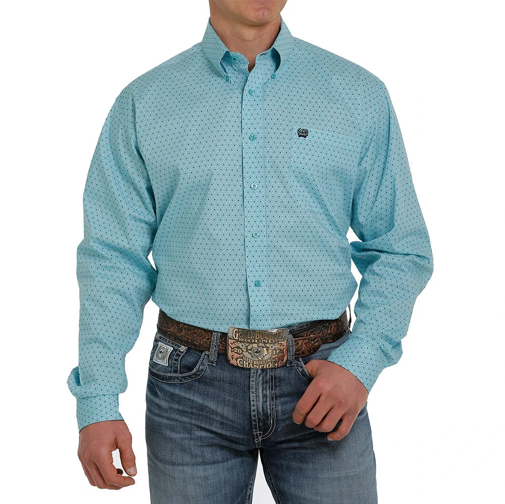 Add some style tp your wardrobe with our light blue print buttondown by Cinch.