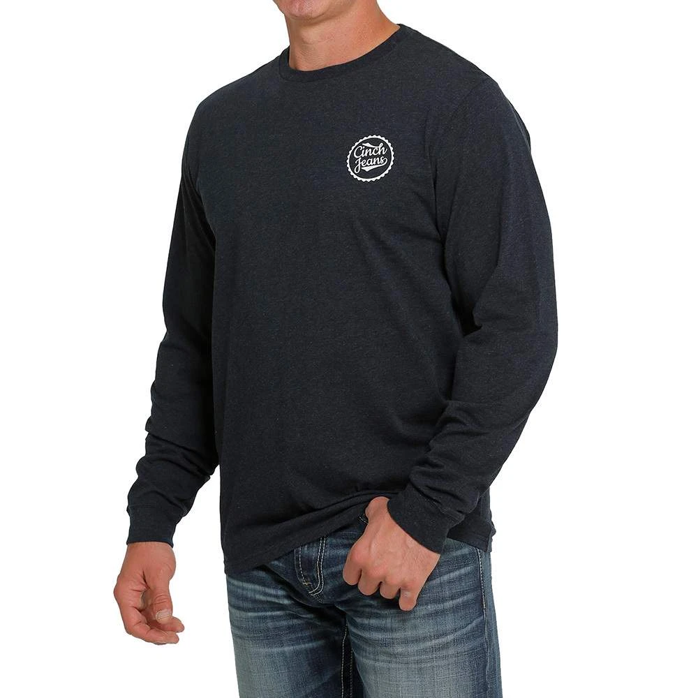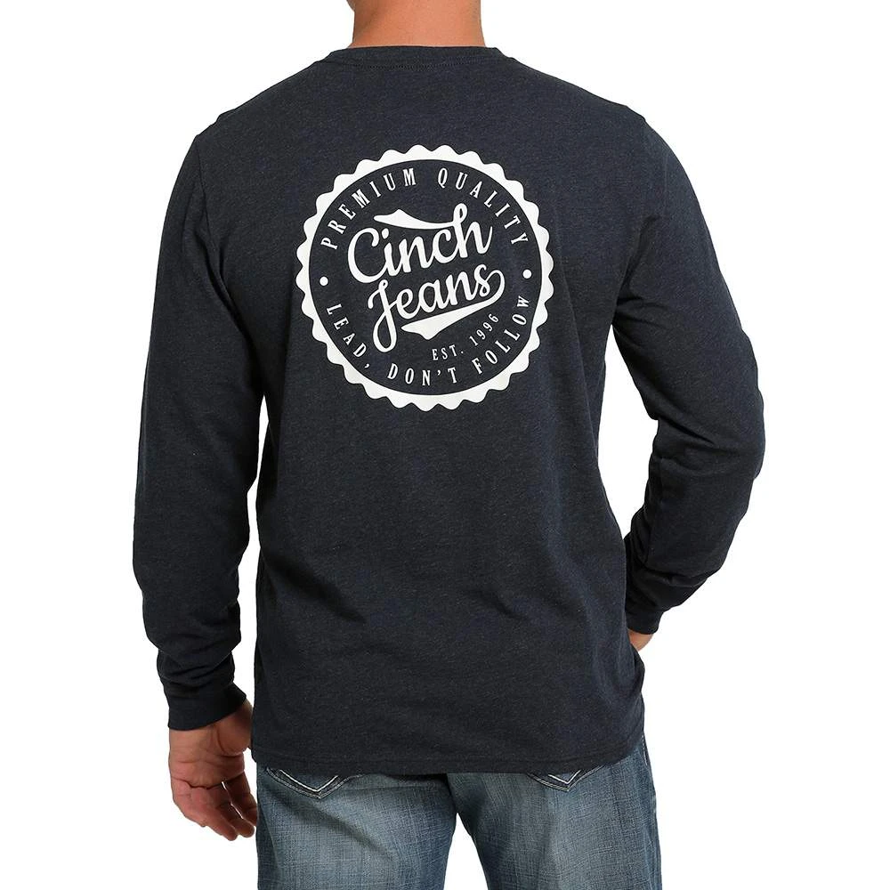 Heathered navy cotton-poly jersey tee with royal and white front screen print.