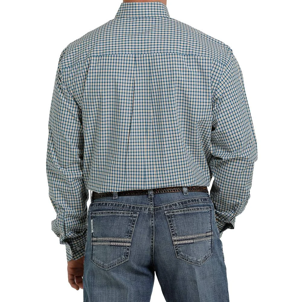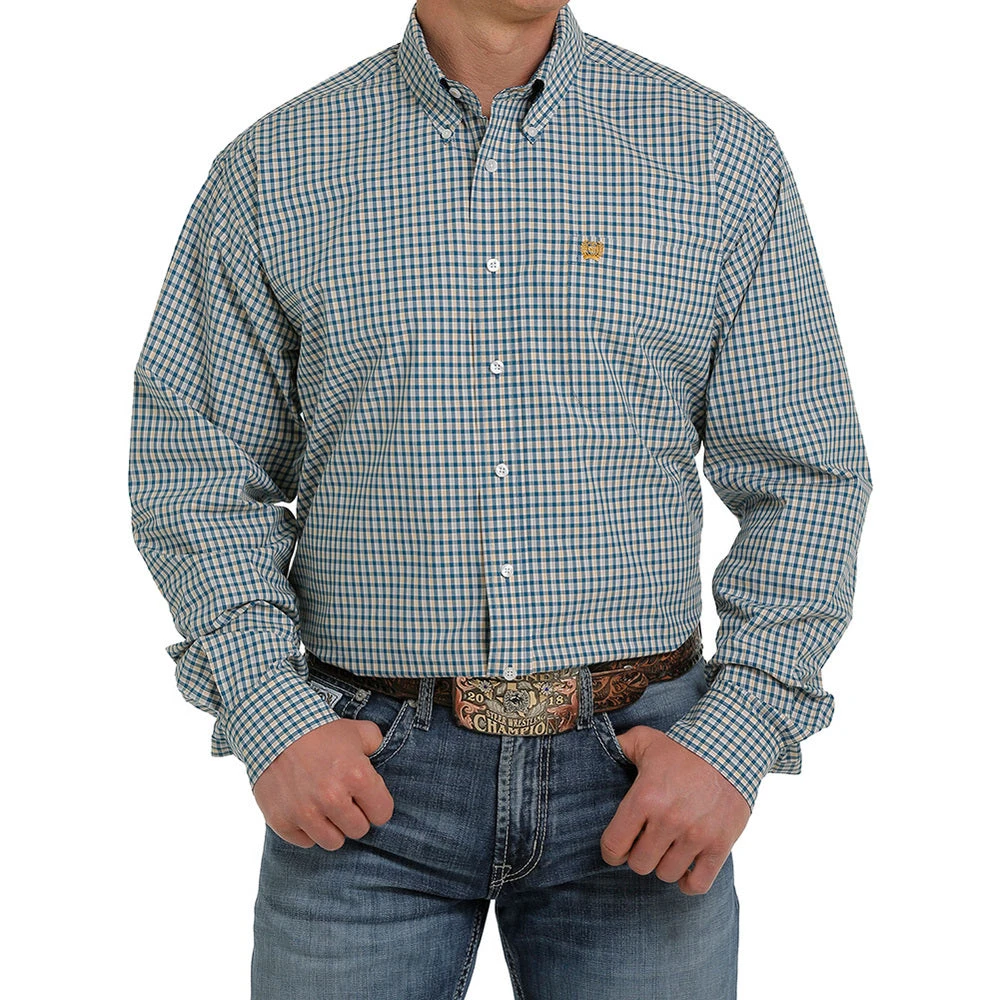 Step out in style wearing our teal & gold plaid buttondown by Cinch.