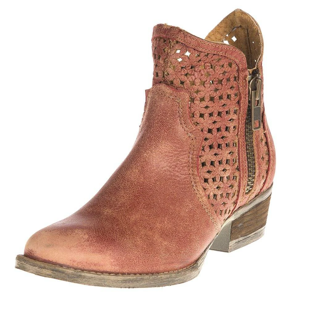 Cute shortie boots in red with cut out styling and a 7″ top.