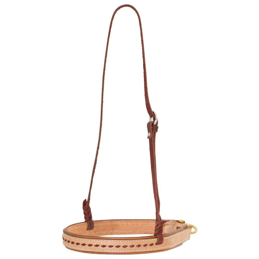 This noseband from Cowboy Tack is constructed of 1-1/4in roughout saddle leather and features a latigo buckstitch. Brass halter bolts and o-ring with stainless steel buckle.