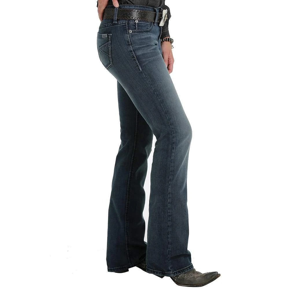 Pieced back pockets and embroidery in shades of navy and gray highlight a dark stonewash finish on this Hannah jean. Subtle finishing details of hand sanding, whiskers and chevrons emphasizee the 11oz. stretch denim delivereing a modern moody look.