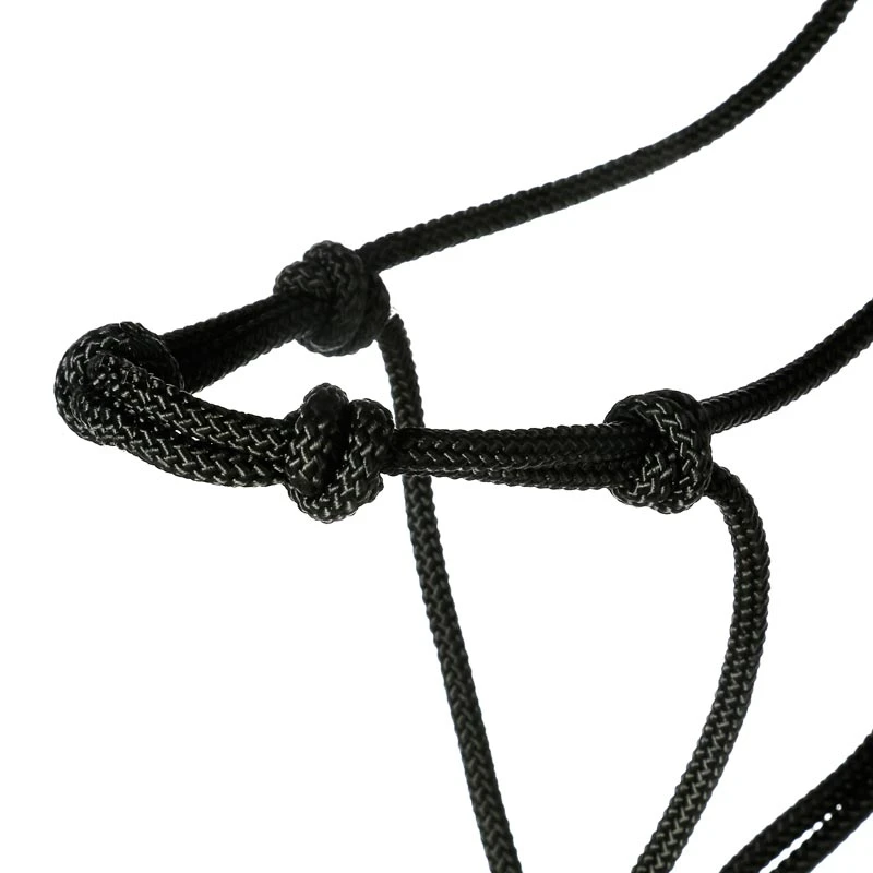 A softer, less expensive halter that is made from ¼” diamond braid rope. It consists of a polypropylene cover over a nylon core. Firm yet flexible the diamond braid cover offers good texture and holds knots well.