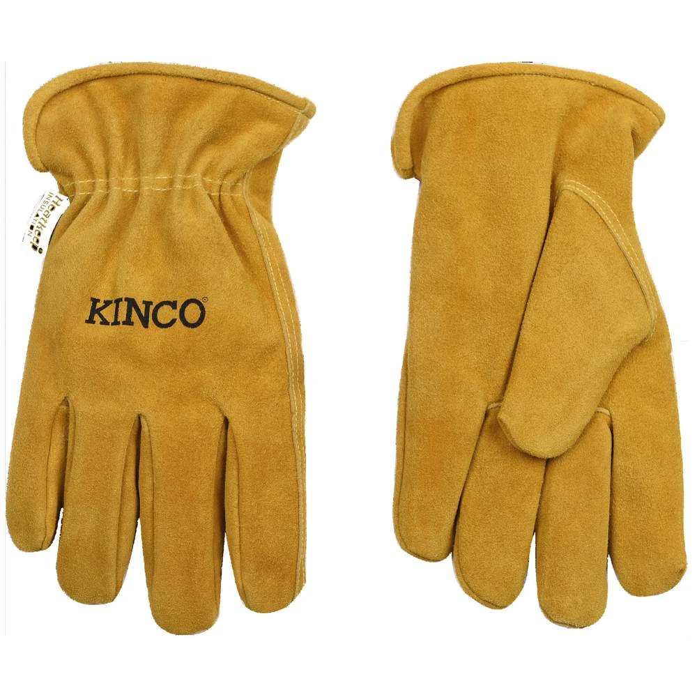 These Kinco gloves are made of full suede cowhide providing good durability from wear and tear while shielding hands from punctures and abrasions while doing chores. They have an easy-on cuff with shirred elastic wrist for quick on and off use. The out-seam helps eliminate rub points and the leather welt at the base of the middle and ring fingers reinforces seam strength and durability. They are lined with pile thermal lining which provides a barrier to the interior of the glove aiding warmth. Suggested uses: chores, livestock handling, fencing, mowing, landscaping, gardening, all purpose work/chores. Sold as one pair. PW50RL
