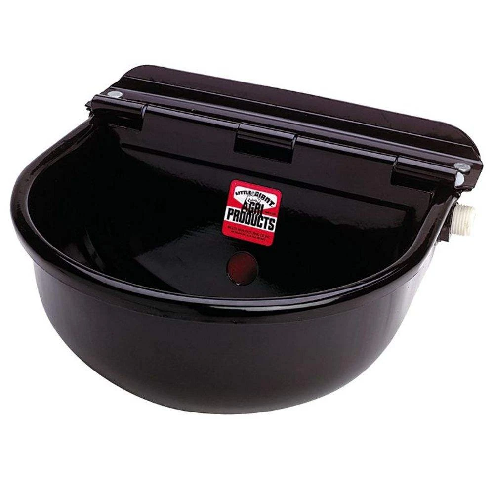This dependable, all-purpose automatic waterer is easy to connect to pipe, flex hose, or garden hose water supply. Works well for horses, cattle, hogs, goats, and other outside animals, with no special training required. Not intended for use inside a home. Safely operates between 20 and 50 pounds per square inch pressure. Constructed from heavy-gauge, prime-quality drawn steel with nontoxic black epoxy coating for corrosion resistance. Can be easily installed at any height using lag bolts or through bolts. Mounting plates are included but other mounting and water connection hardware are not included. Recommended mounting hardware to fence: two 3/8 inch diameter bolts or two 3/8 inch lag screws. Mounting to a wall: two 3/8 inch lag screws. Will fit a 1/2 inch pipe or hose with a left or right connection. Measures 10 inch long by 10.75 inch wide by 5.5 inch high.