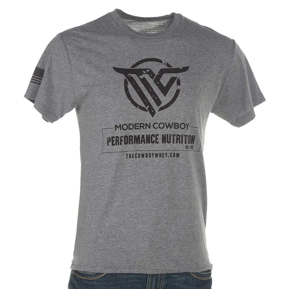 Go for a casual look wearing our Gray Modern Cowboy Nutrition T-Shirt.