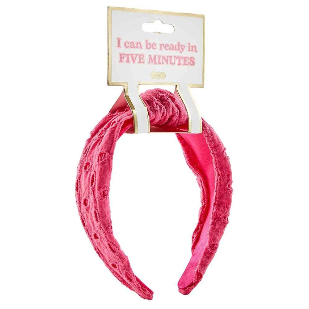Sweep back your second-day hair with this navy cotton eyelet headband with a top knot accent!