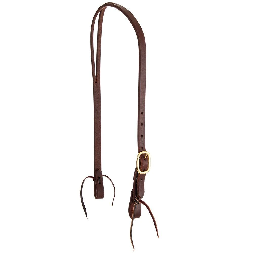 3/4″ Oiled leather slit ear headstall with a single brass hardware buckle, that will not rust. This headstall is finished off with bit tie ends that make bit changing a breeze. Economically priced headstall that has a great feel.