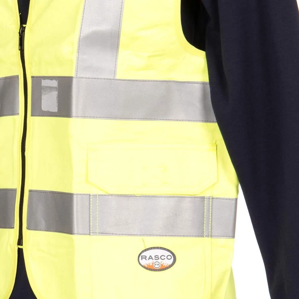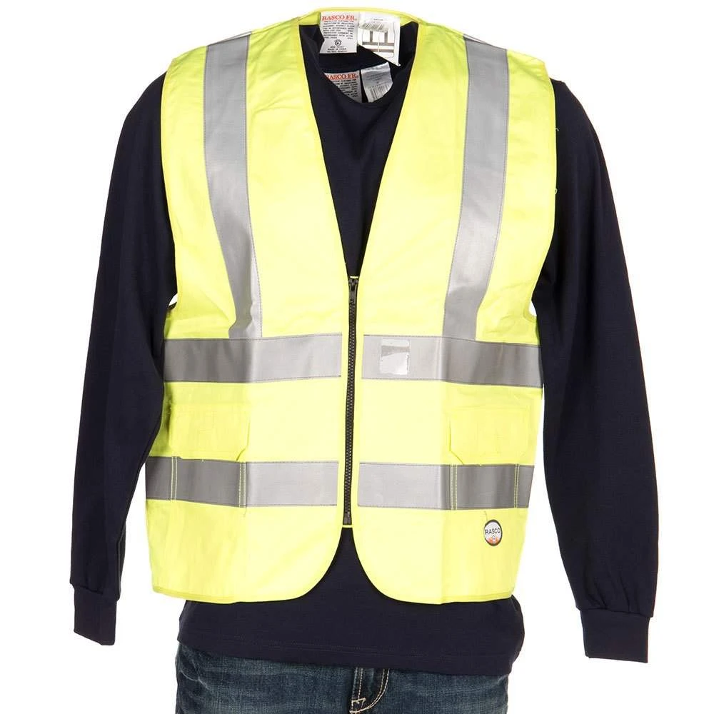 Our new light reflective vest from Rasco FR is flame resistant with pockets on both sides and a zip up front for convenience.