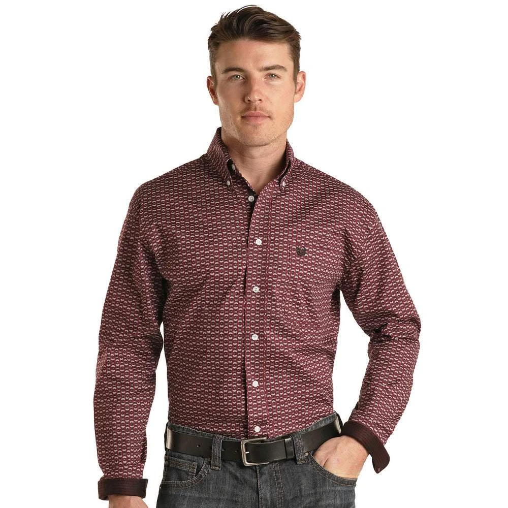 You’ll love this unique geo print button down from Rock & Roll.