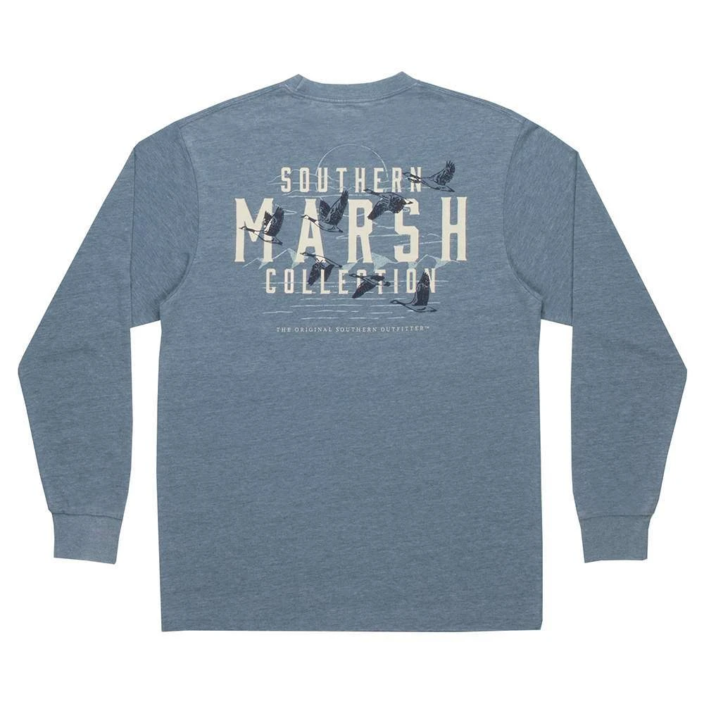 When you spot geese migrating south, you know hunting season is upon us! Prep your wardrobe for the best time of the year with the Etched Formation Tee. Made with our special SEAWASH™ fabric, it’s meant to fade over time to create a vintage look and feel. The etched design on the back adds rustic touch, and makes it the perfect bottom layer for your next early morning hunt. The long sleeves and super soft material will keep you warm as you scope out your prey from the blind. Finished with our signature logo on the front pocket and a printed neck tag for additional comfort.