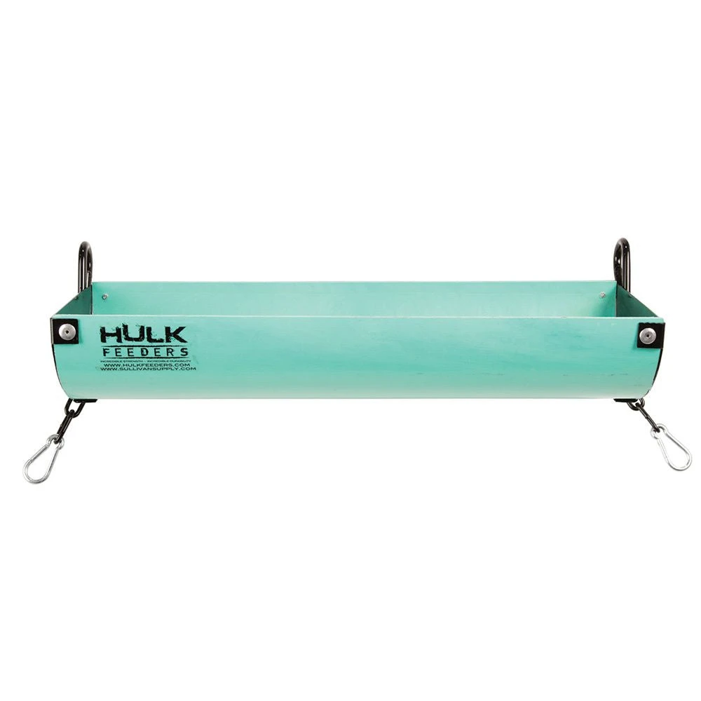 HULK Feeders are the strongest most durable feeders on the market. The end caps are constructed of thick laser cut steel. Heavy duty spring loaded clips and anti-tip chain are welded onto the end caps for secure stability. Opening measures 4” deep x 7-1/2” across.