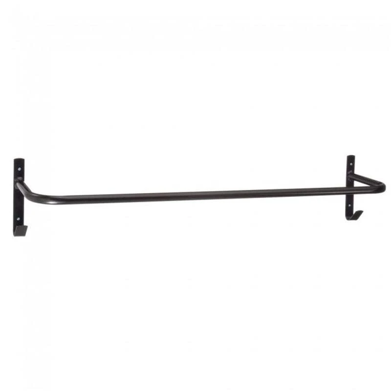 Great for attaching to stall fronts, tack rooms, and trailers. 36” long rail is 5 1/4” deep to easily accomodate thick blankets. A hook on either end for halters, bridles, fly masks, lead ropes, etc. Black.