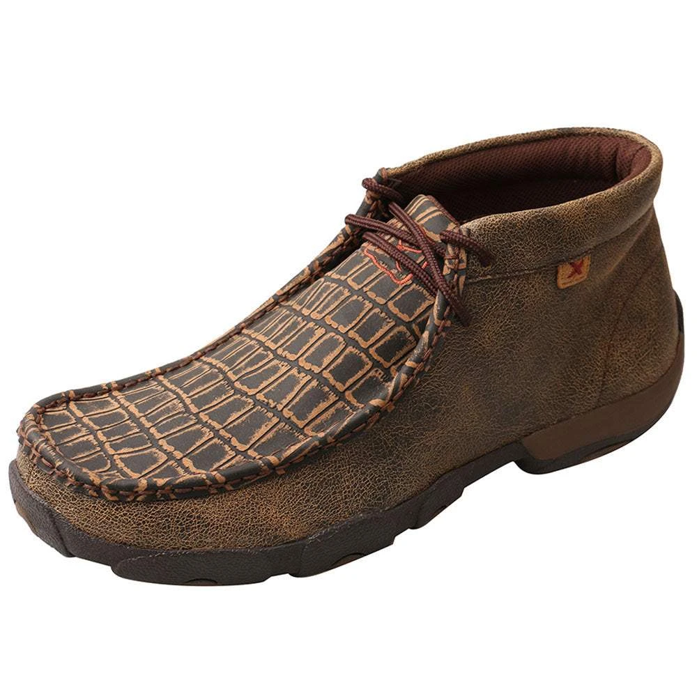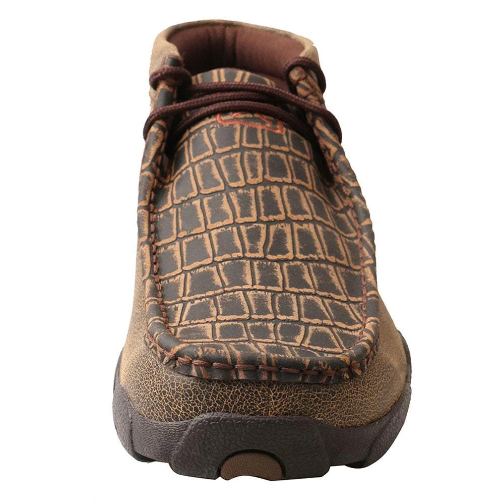 Step out in style and comfort in our caiman print driving mocs with alloy toe from Twisted X Boots.