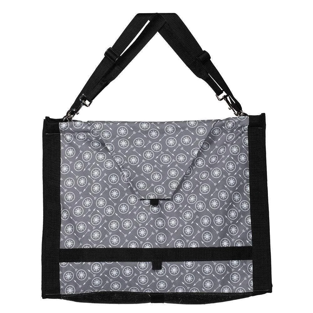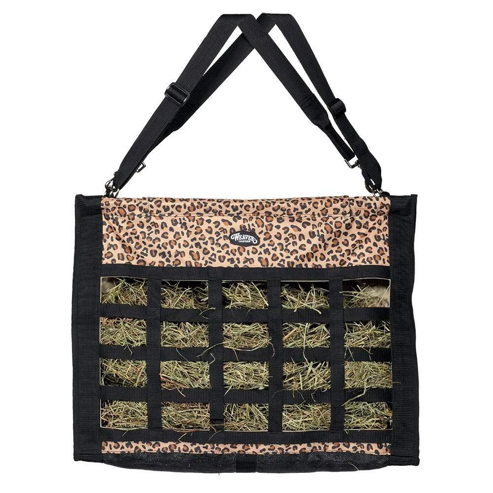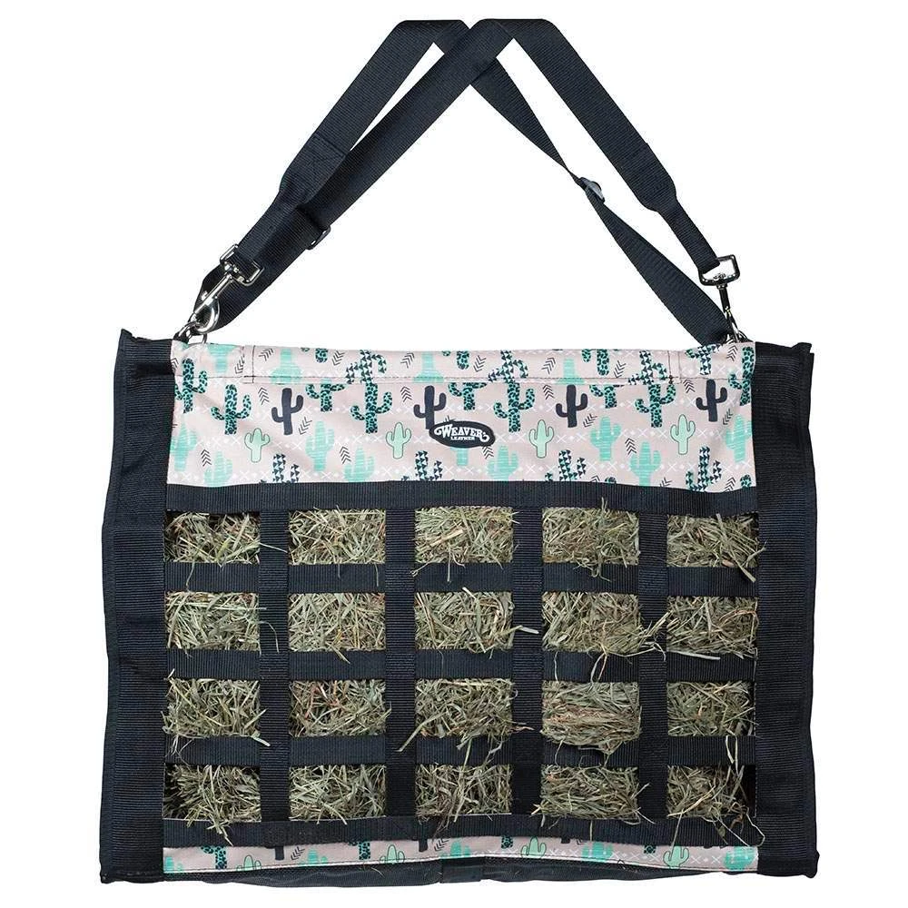 The Weaver Leather Slow Feed Hay Bag is designed to promote slower feed consumption and promote better digestion. Its rugged 600 Denier polyester construction is designed to help alleviate boredom as well as reduce hay waste. Great for use in stalls and trailers, this hay bag easily hangs from adjustable, detachable straps. Top-loading design holds two average-size flakes of hay and features a mesh bottom for ventilation. Hole Size: 3″L x 2″W; Size: 18.5″L x 25″W with 11.5″ opening at top to fill.