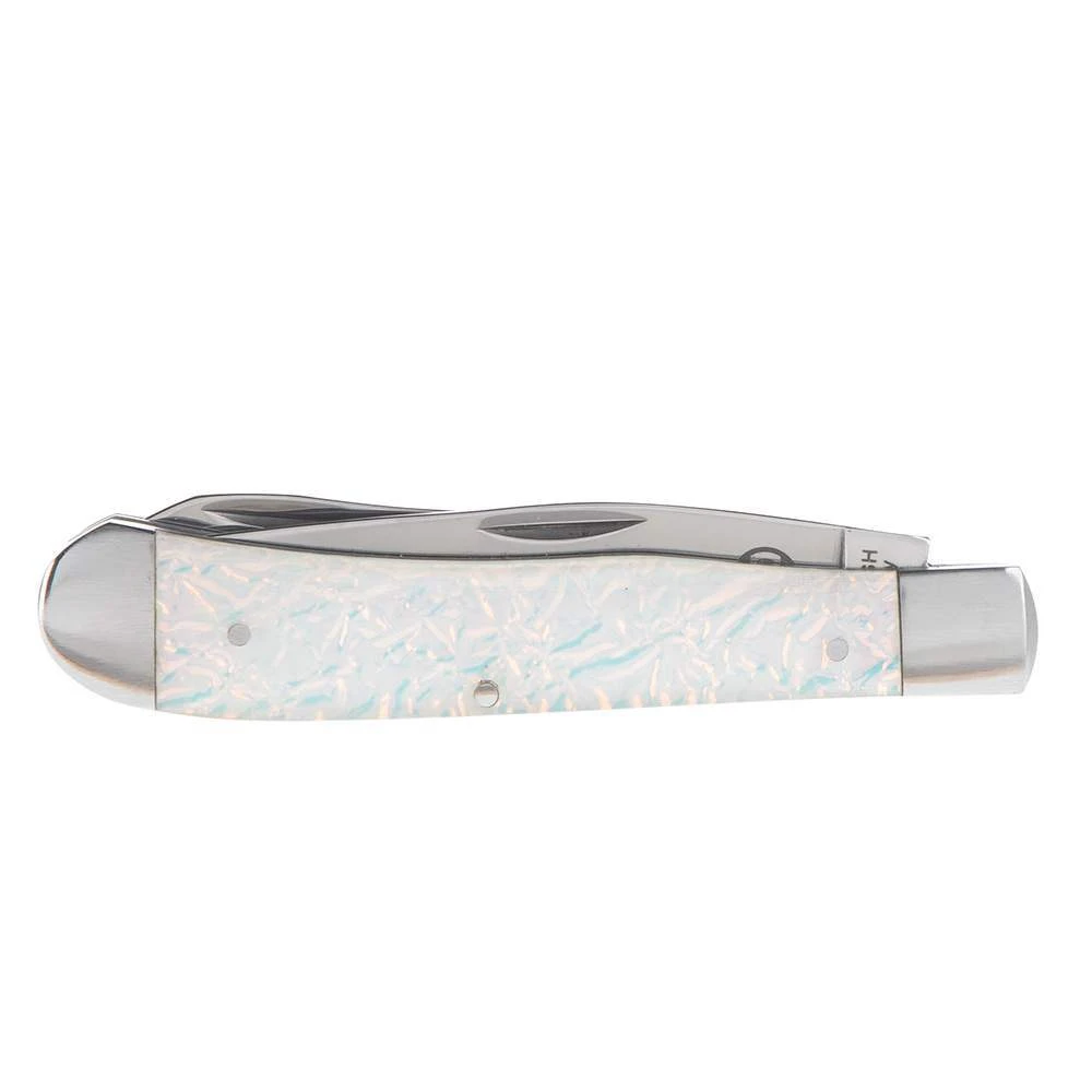 This Circle SH Cutlery trapper knife is a great everyday pocket knife. This trapper features two blades, clip and spear made of stainless steel. The handle is a pink acrylic witht two bolsters. CSH-15