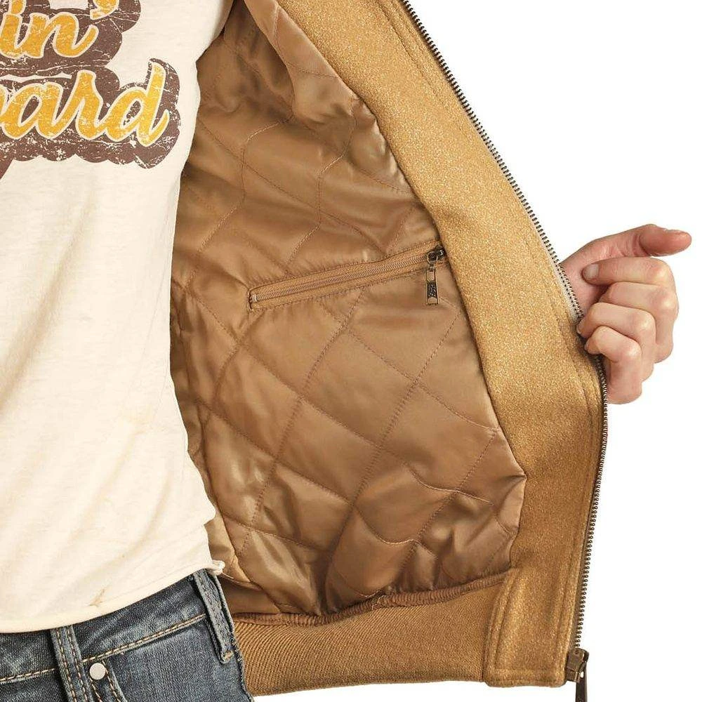 Be warm and trendy in this Women’s Powder River Aztec Wool Bomber Coat.Â