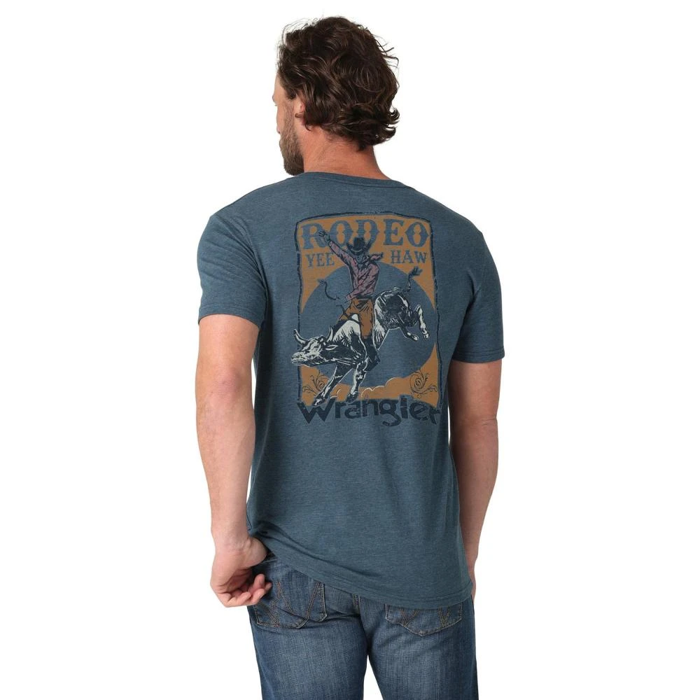 Need a break from your denim shirts and Western snaps? This Wrangler® graphic t-shirt is sure to add some yeehaw to your everyday rotation. It’s crafted from a lightweight cotton blend you can wear all year round.