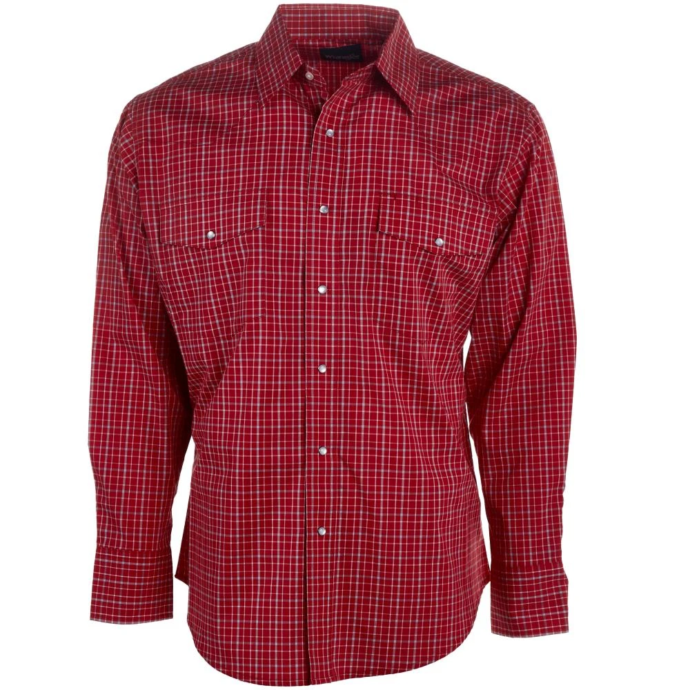 - Men’s Wrinkle Resist Red Plaid Snap Shirt